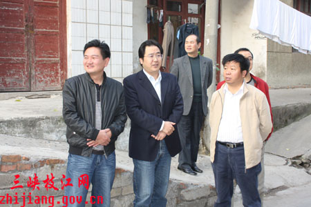张武(中)一行在五柳树社区张垸巷区